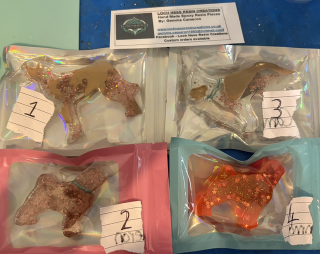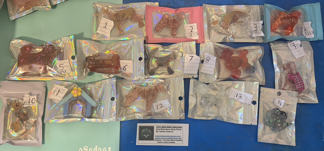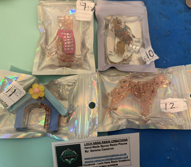 These are all handmade by me using epoxy resin and also uv resin.