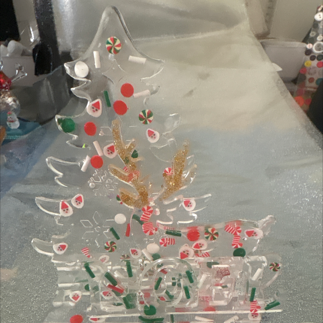 These are lovely sleighs with a Xmas tree, a reindeer and a Noel sign. Each one has different items added to them to create these cute sleighs.